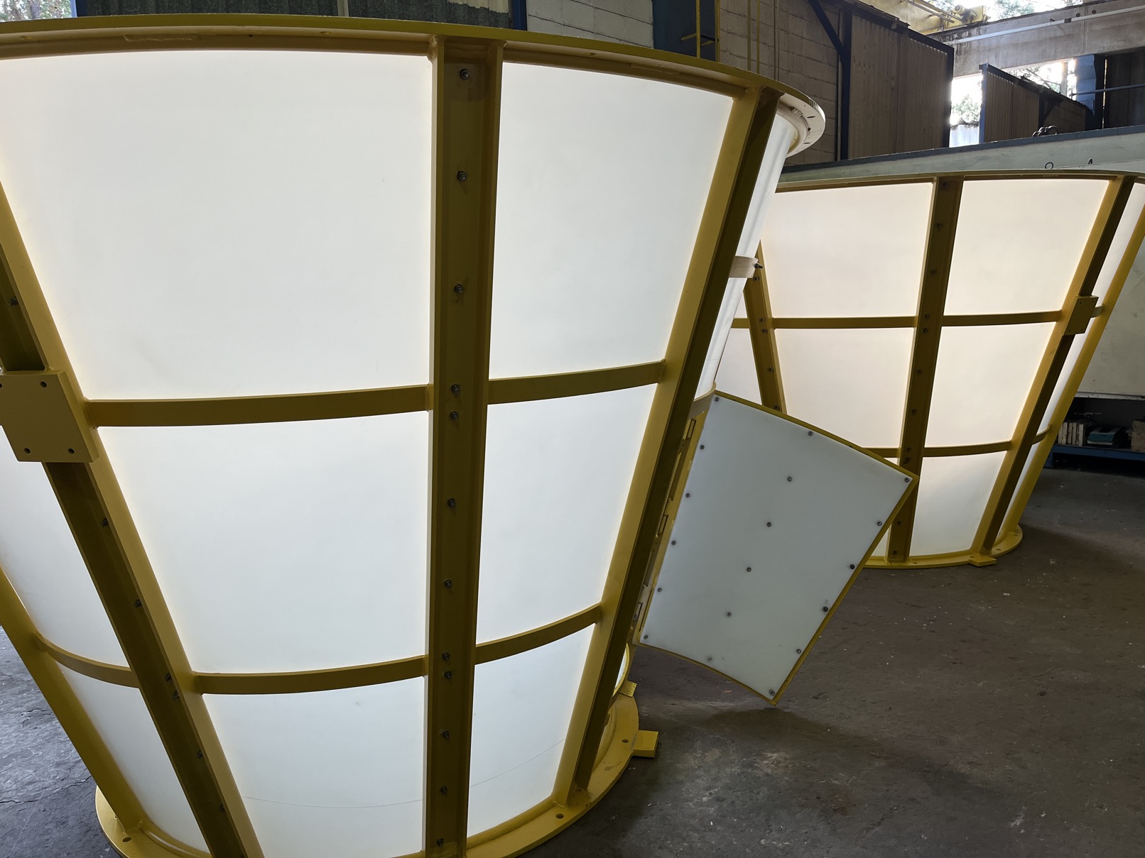 Silos - Moegas – Chutes – Dutos – Calhas – Misturadores – Peneiras – Elevadores de Canecas – Redlers – DSH – Trypper e Tulhas.